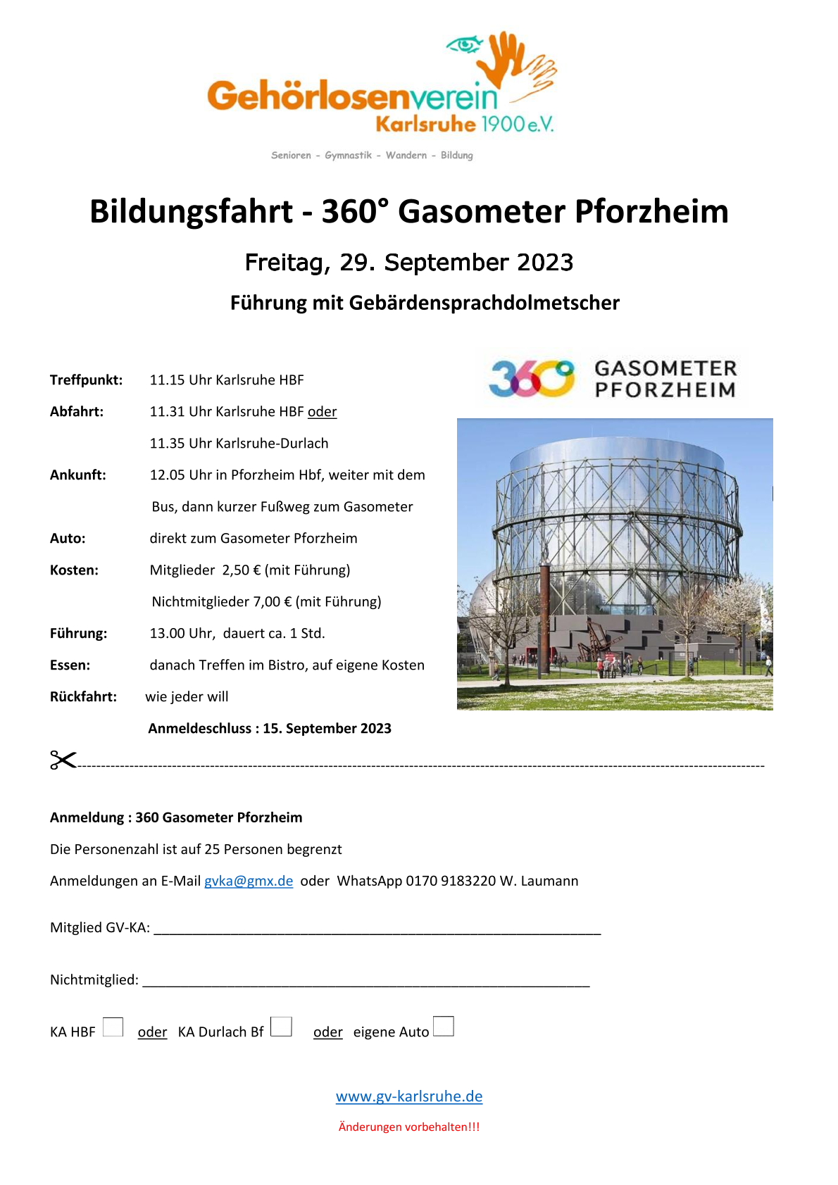 Ausschreibung Bildungsfahrt Gasometer Pforzheim